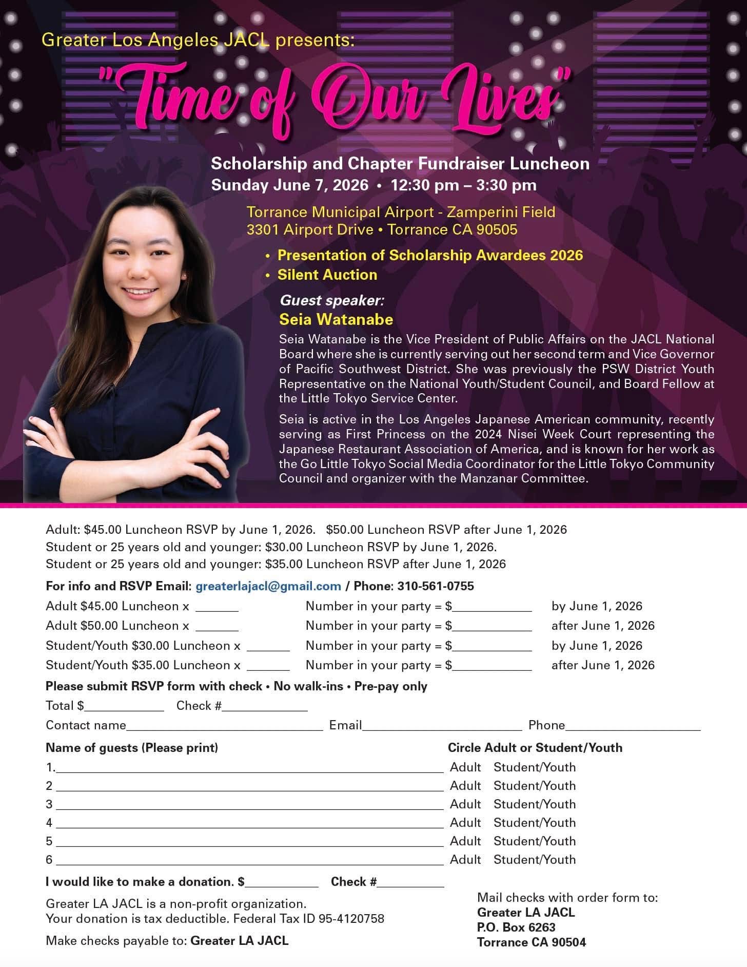 Saturday, May 30, 2026 5:30pm – 8pm at Gardena Valley Japanese Cultural Institute Main Hall 1964 W 162nd Street, Gardena, CA 90247