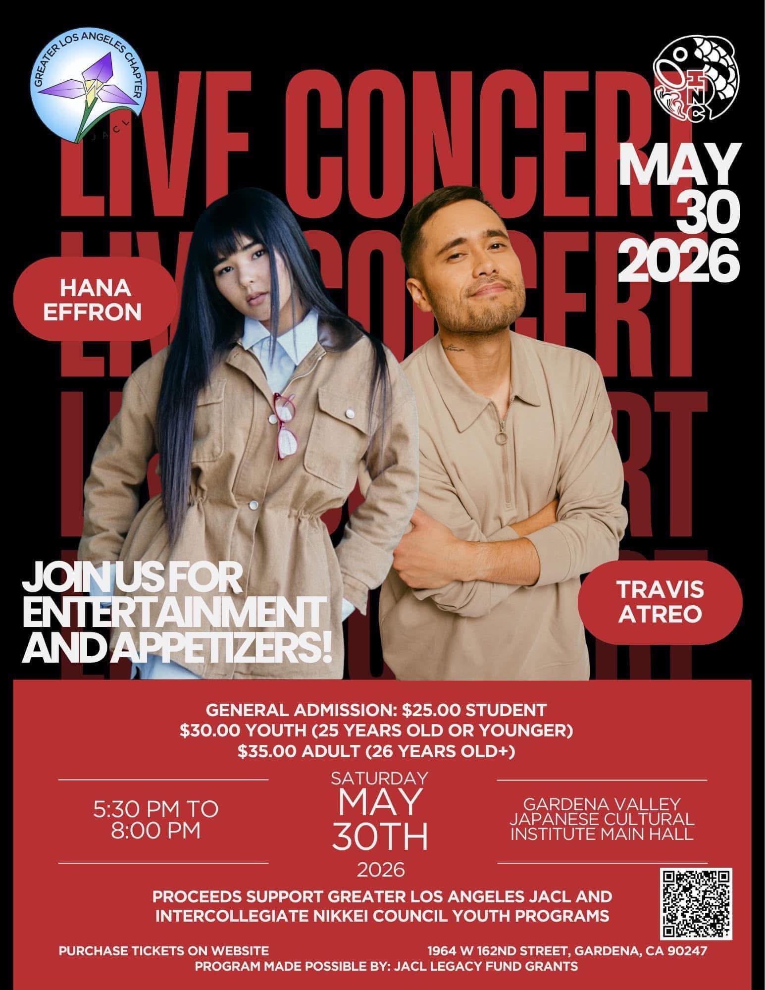 Greater Los Angeles JACL and Intercollegiate Nikkei Council Presents Live Concert HANA EFFRON AND TRAVIS ATREO